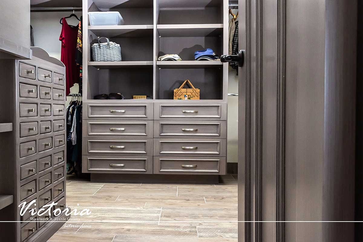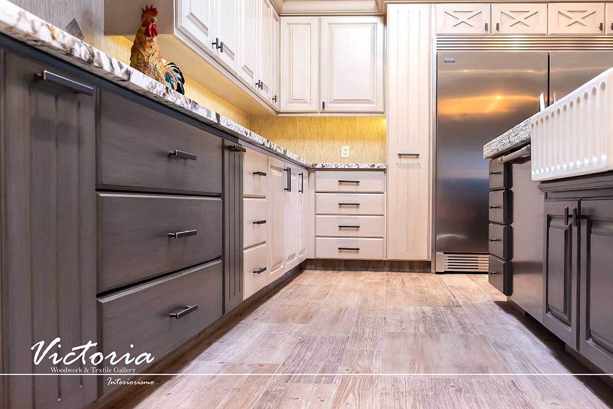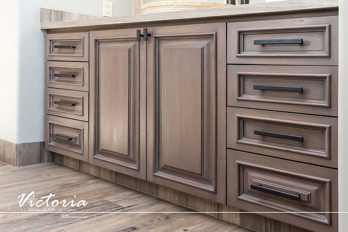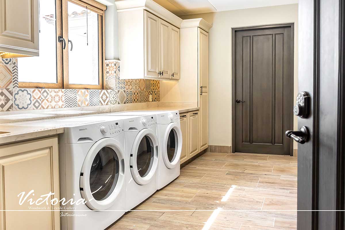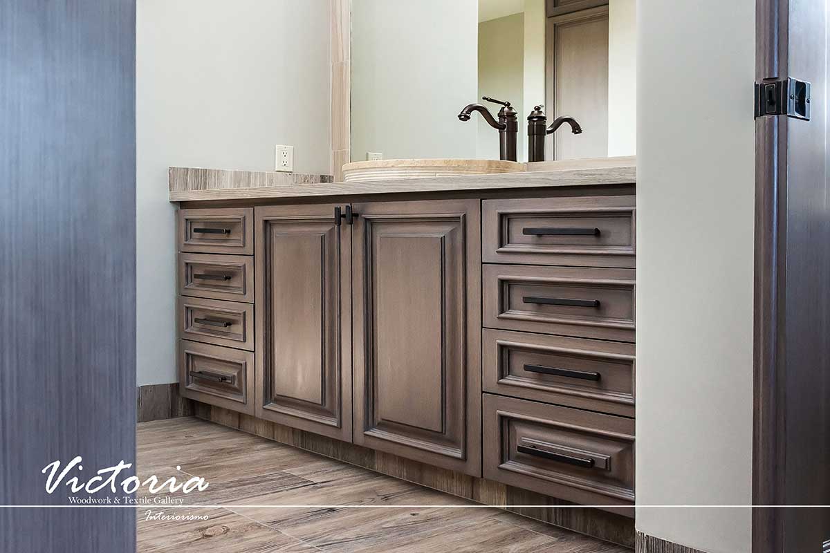 Proyecto de carpintería fina. Cocina integral | Lavandería | Vanitys | Closets | Oficina | Alacena | Puertas de intercomunicación. Madera de cedro | Terminación laqueado-patinado.