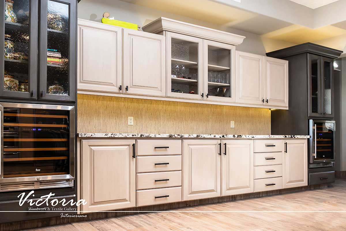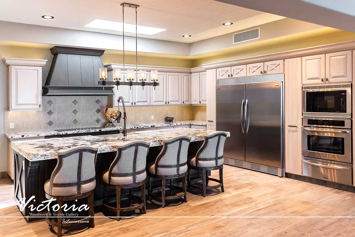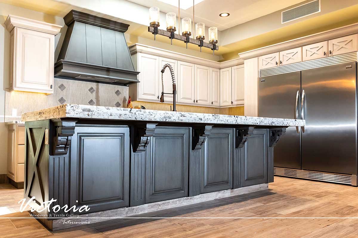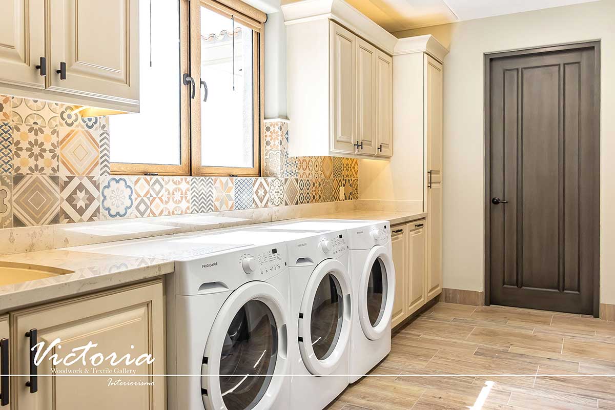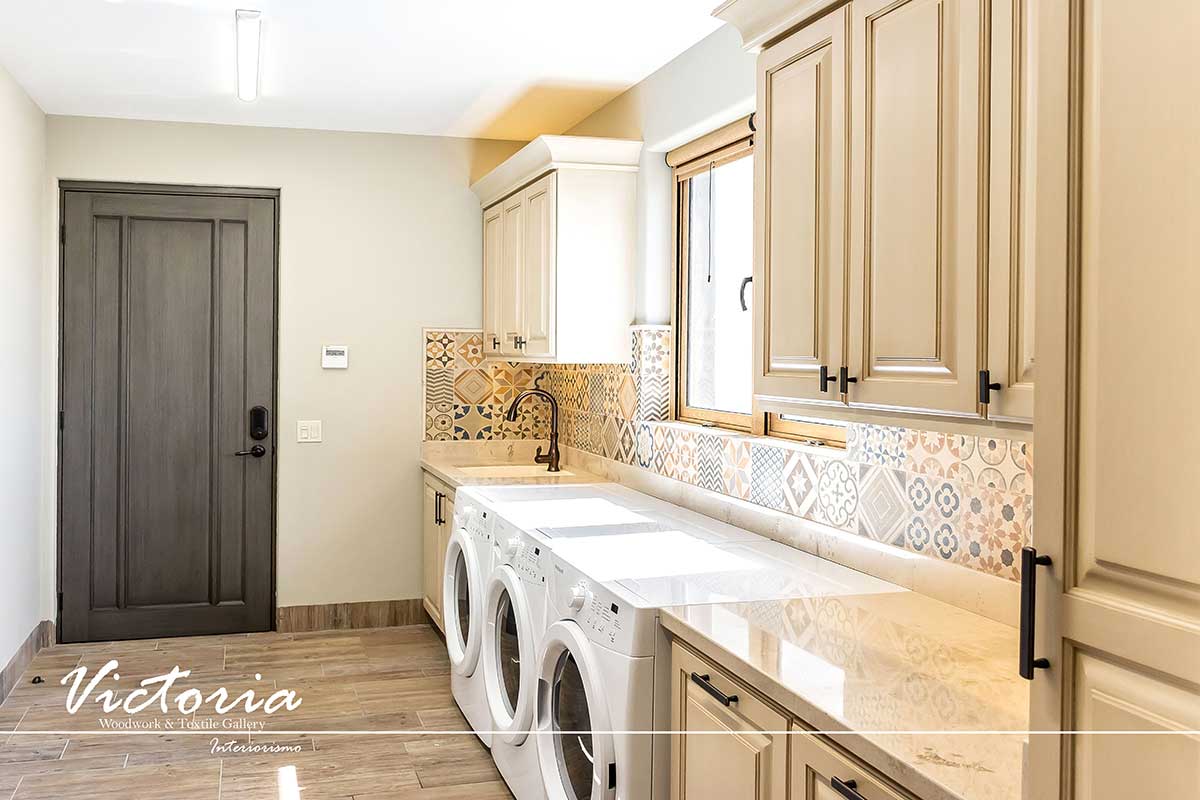 Proyecto de carpintería fina. Cocina integral | Lavandería | Vanitys | Closets | Oficina | Alacena | Puertas de intercomunicación. Madera de cedro | Terminación laqueado-patinado.