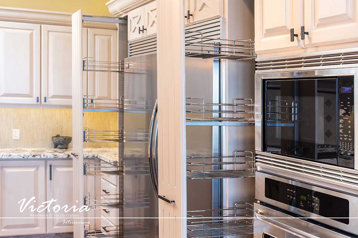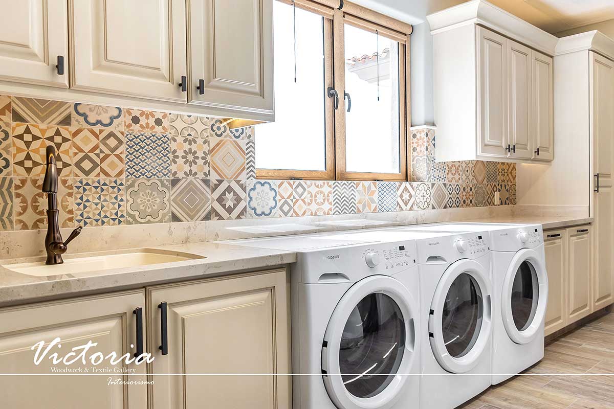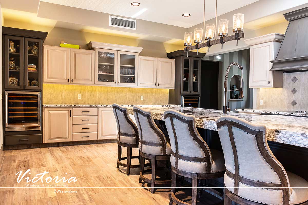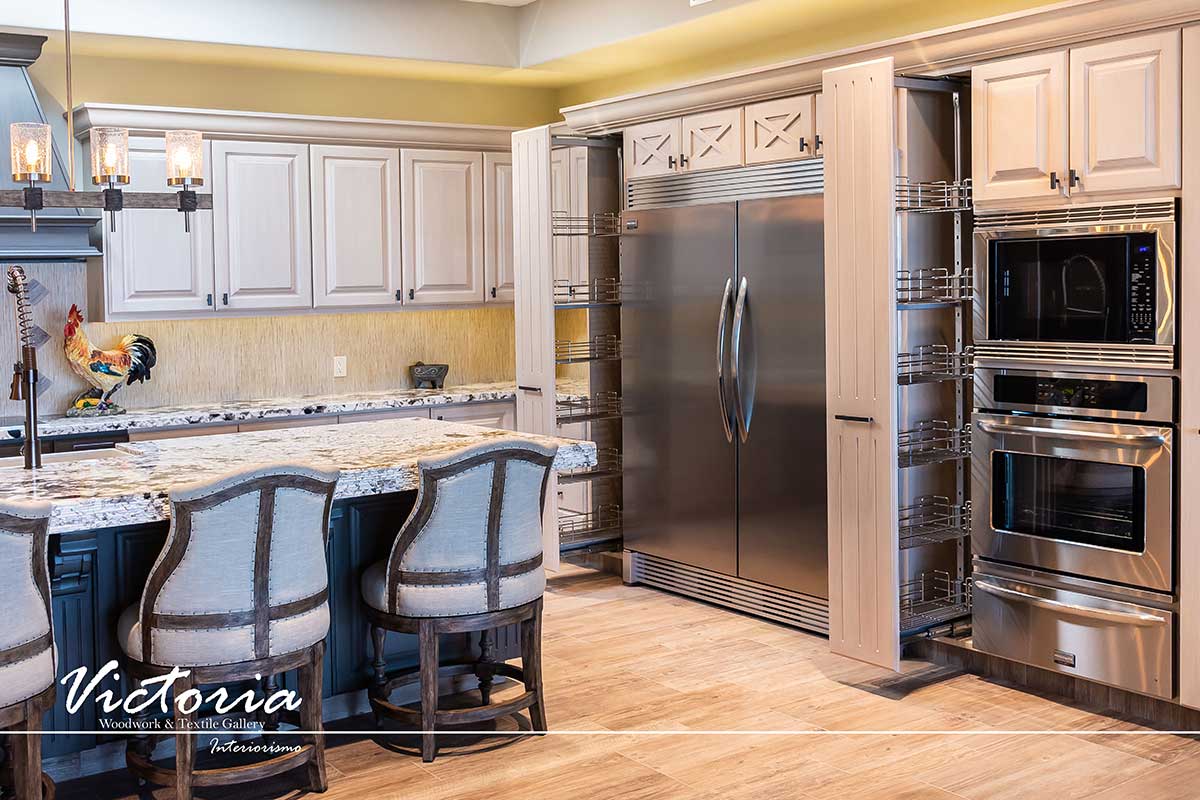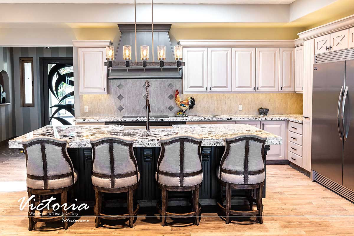 Proyecto de carpintería fina. Cocina integral | Lavandería | Vanitys | Closets | Oficina | Alacena | Puertas de intercomunicación. Madera de cedro | Terminación laqueado-patinado.